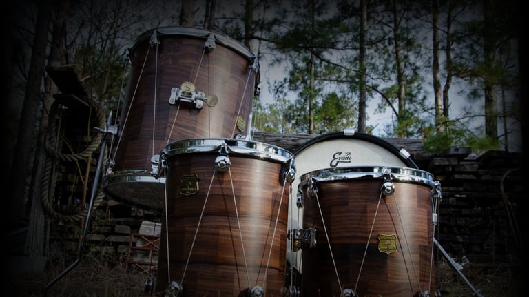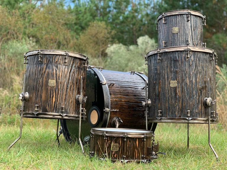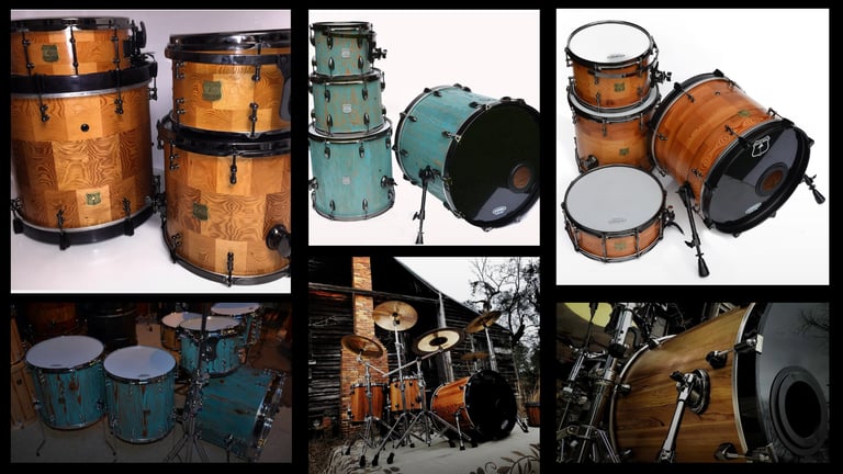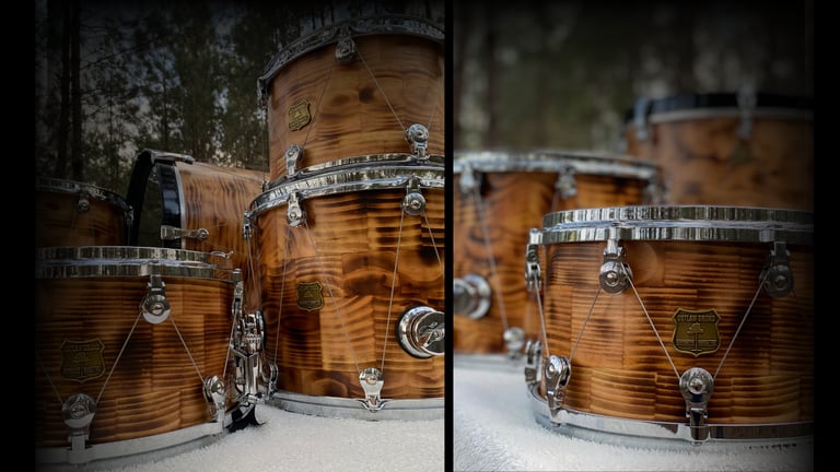 Custom-built drums and designed to meet the specific needs of drummers. We take pride in using interesting woods, particularly aged pine, to create these drums using segment or stave-style construction methods. The result is a visually captivating and acoustically phenomenal instrument that resonates with history and provides drummers with exceptional control and tonal versatility.
