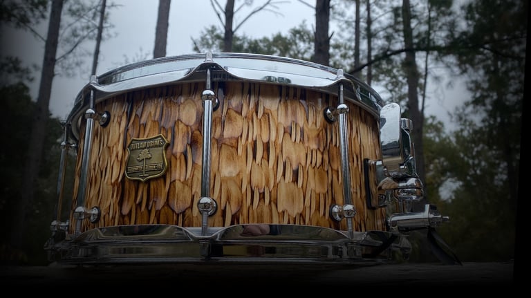 Welcome to our gallery, where you will discover a captivating collection of snare drums, each with a unique story. The use of reclaimed wood sets these drums apart, giving them an environmentally conscious touch. From a century-old red oak tree to a salvaged mahogany door and weathered barn planks, these drums embody the spirit of sustainability and preserve the history of their materials.
