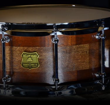 This mahogany snare series is made from recycled wallboards and trim from an old house being remodeled. Sonically the drums have a warm sound that produces less highs and lots of bite! The wood-aged over years in a climate-controlled home making it extremely stable and exceptionally resonant